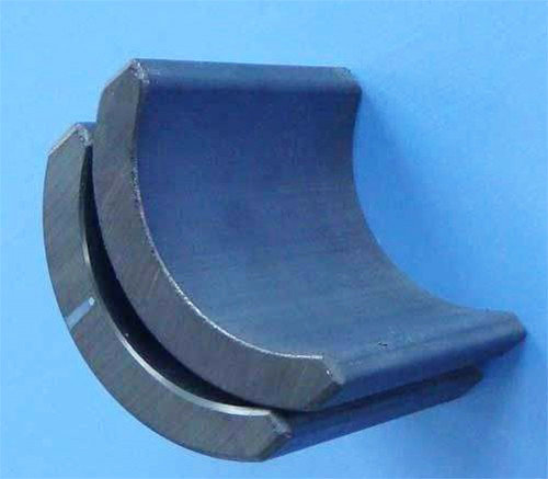 普磁鐵氧體瓦片屬燒結永磁材料,由鋇和鍶鐵體組成,這種磁材除了有較強的抗退磁性能,還有成本低廉的優勢。普磁鐵氧體瓦片剛硬易脆,需要特殊的機械加工工藝。其異性磁體因沿製造方向取向,須沿所取方向充磁,而其同性磁體因沒有取向,則可沿任何方向充磁,盡管在受壓麵常常是小的一麵會發現稍強的磁感應。磁能積範圍在1.1MGOe至4.0MGOe之間。